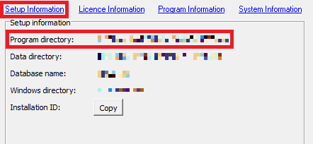 Open WinTMS on the PC that already has access to WinTMS, and then click the Help menu on the toolbar, and select About. By default, Setup Information should be open - if it isn't, click it to open it. You will then need to go to the folder shown in the Program directory: