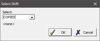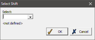 A pop-up window will appear, where you can use a drop-down menu to choose a shift. Choose a shift, and then click OK to continue: