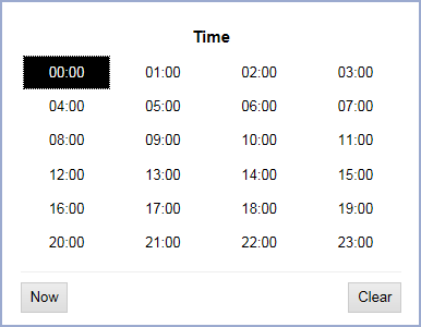 You can also use the clock if it is displayed. Click on the clock icon to the right of the time field to display a list of times: