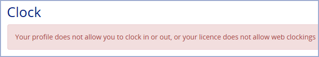 Note: you may also be able to record both TMS and TAS clockings from the same page.If the Web clocking feature has not been enabled for you, a warning will be displayed when navigate to the Clock page. For example: