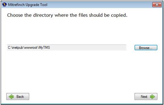 Select the Browse button and locate the directory where your existing WebTMS files have been installed. The following is the defaults directory: