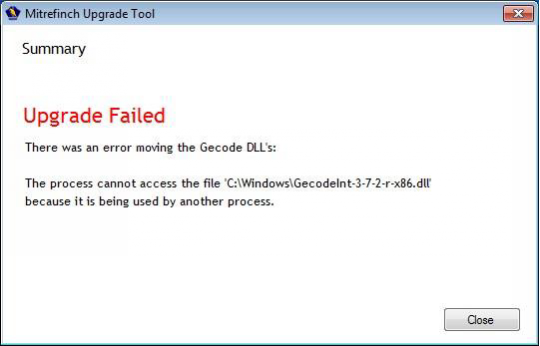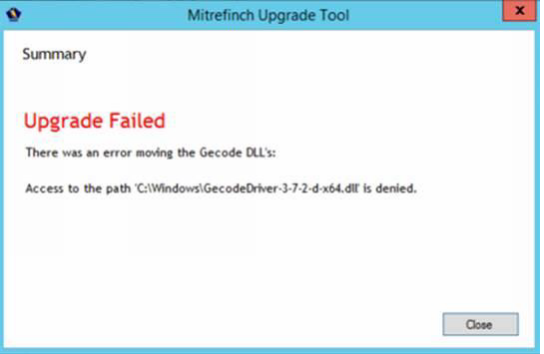 Solution: Re-run UpgradeWizard.exe and ensure you right click and select Run as Administrator.