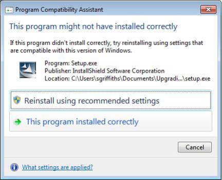 If you are installing on a more recent PC Operating System, you may also see the following prompt: