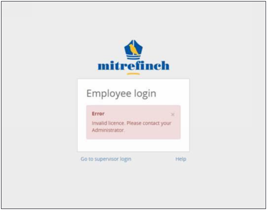 After upgrading v8 you will not be able to fully load WinTMS or WebTMS. For example, the following ‘Invalid licence’ error message will appear when attempting to login via WebTMS: