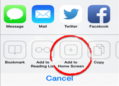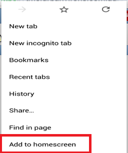 Select the button on the bottom right-hand side of the screen (the location of this may be in the browser itself), and select 'Add to homescreen':