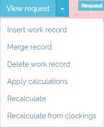 Note: Any change you make to your Work record, including any resulting from the Apply calculations and Recalculate day actions, may require approval from your Supervisor and so will automatically generate a Request. Work records with Requests are highlighted with a Request tag in the Anomalies column.