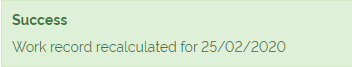 Click Submit to proceed or Cancel to return to the unchanged Work record. This action causes TMS to re-calculate the Worked and Absence hours based your clockings. The Work record will be labelled as Draft for a preview, click the Submit button to accept the changes or you can click 'Delete draft' in the action drop-down list to return to your unchanged Work record. The Work record refreshes to show the updated details and a message is displayed at the top of the Clock card when the recalculation finishes.