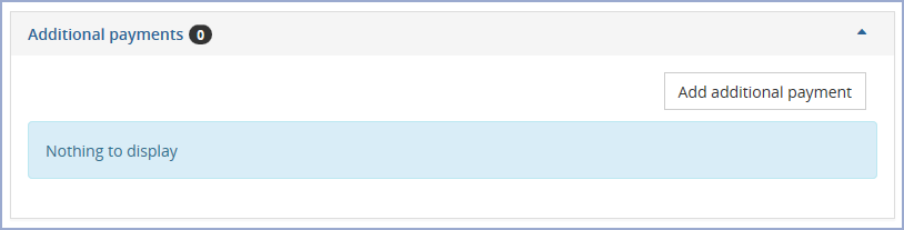 Additional payments — displays details of any specialised forms of payment you have received such as expenses. The panel may also include options to View, Modify and Delete existing Additional payments.